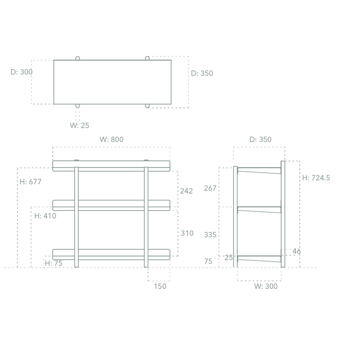 | Unit dimensions | W800×D350×H 725mm / W800×D350×H948mm |